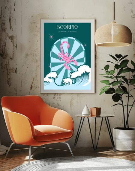 Nous voici avec une superbe Affiche "Scorpio", le célèbre Signe Astrologique Scorpion, qui plaira fortement aux personnes nées entre le 24 Octobre et le 22 Novembre.