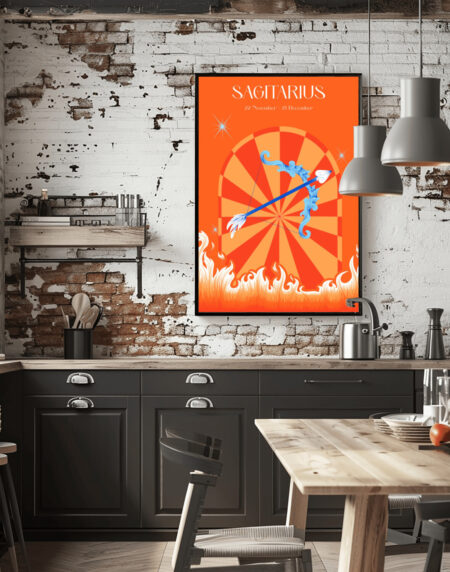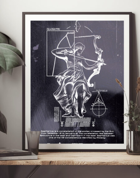 Nous voici avec une superbe Affiche "Sagittarius", le célèbre Signe Astrologique Sagittaire, qui plaira fortement aux personnes nées entre le 23 Novembre et le 22 Décembre.