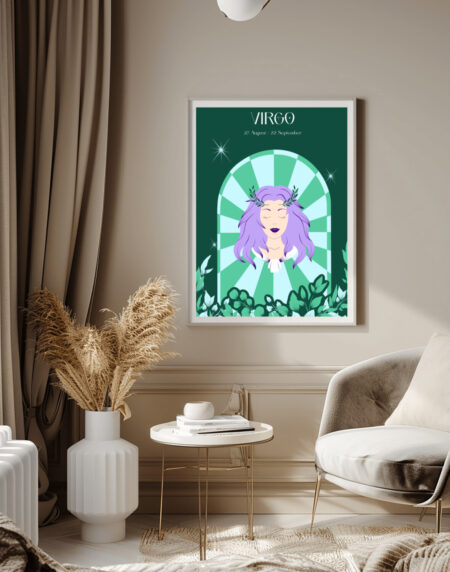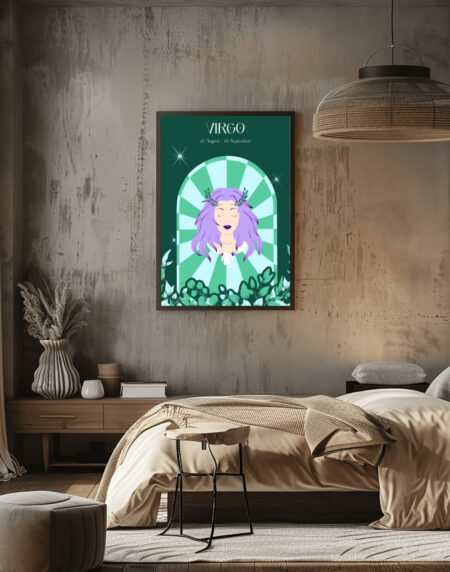 Nous voici avec une superbe Affiche "Virgo", le célèbre Signe Astrologique Vierge, qui plaira fortement aux personnes nées entre le 23 Août et le 22 Septembre.